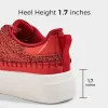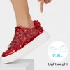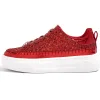 Details and information on Red Glitter Platform Sneakers.
